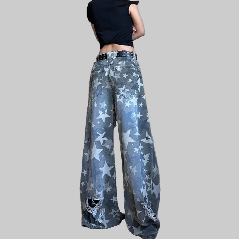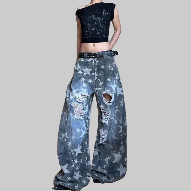 Korean Streetwear Patchwork Oversized Drop Hem Jeans