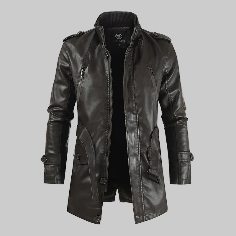 Leather Winter Thick Plush Lining Warm Long Coat