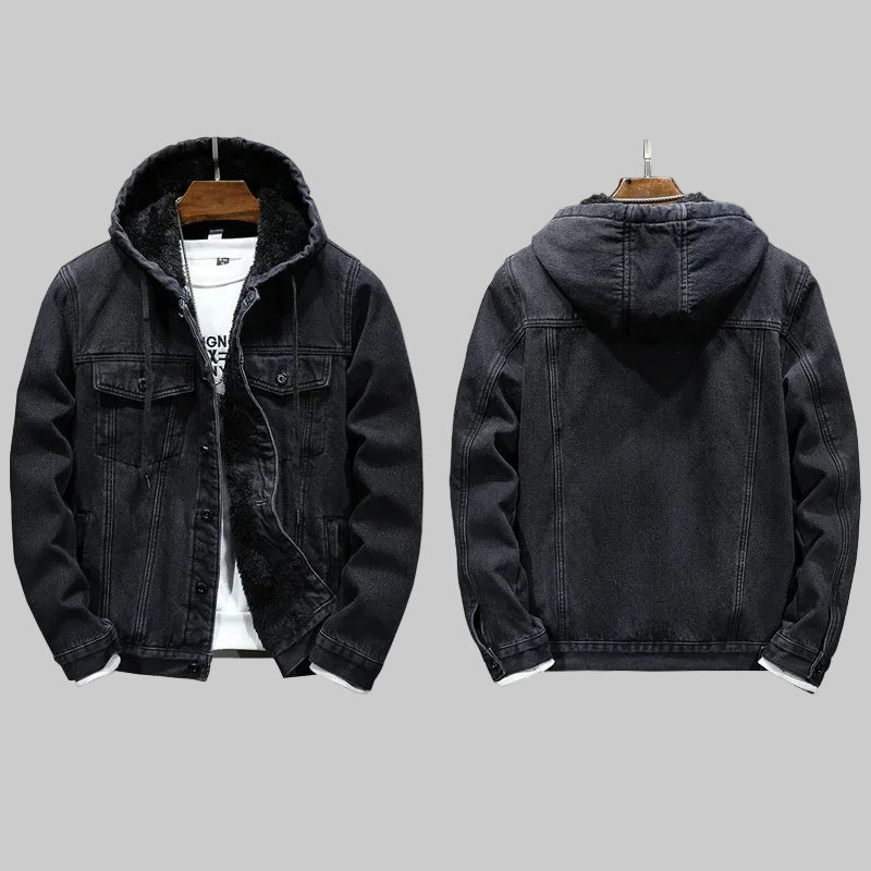 Warm Fleece-Lined Hooded Denim Winter Coat