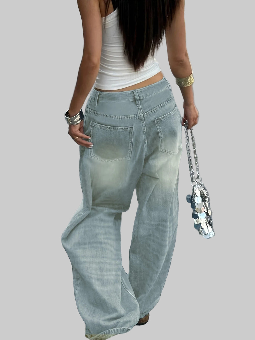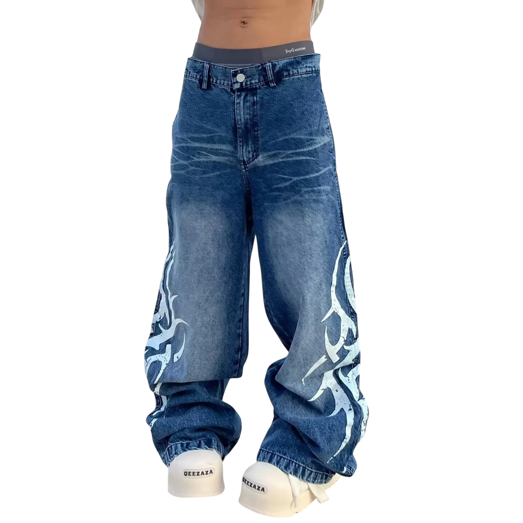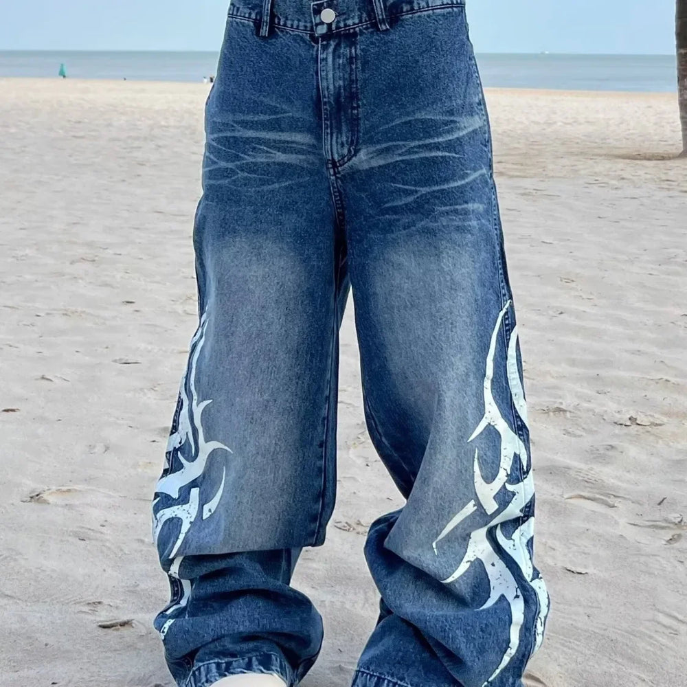 Washed Wide-Leg Totem Jeans – Youth Streetwear Classic