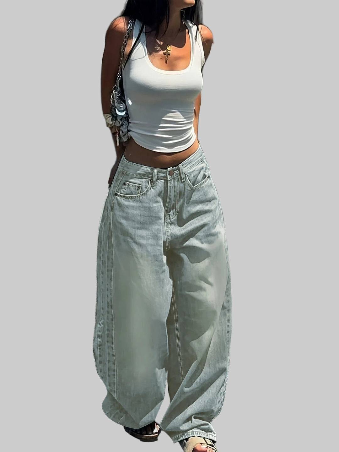 Vintage-Inspired Loose-Fit Straight Leg Denim Jeans