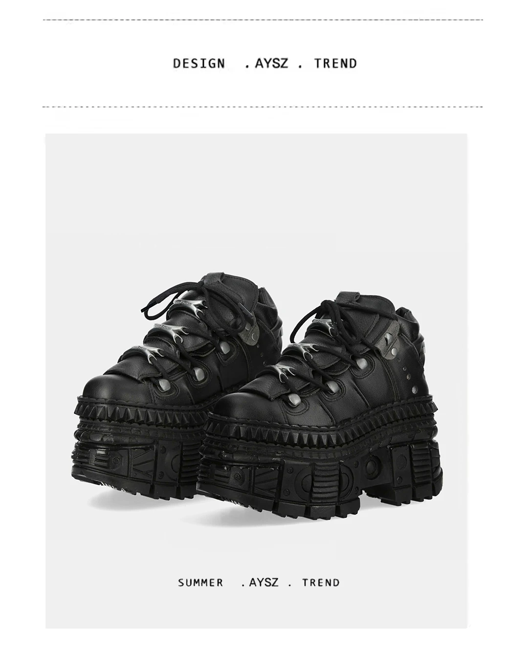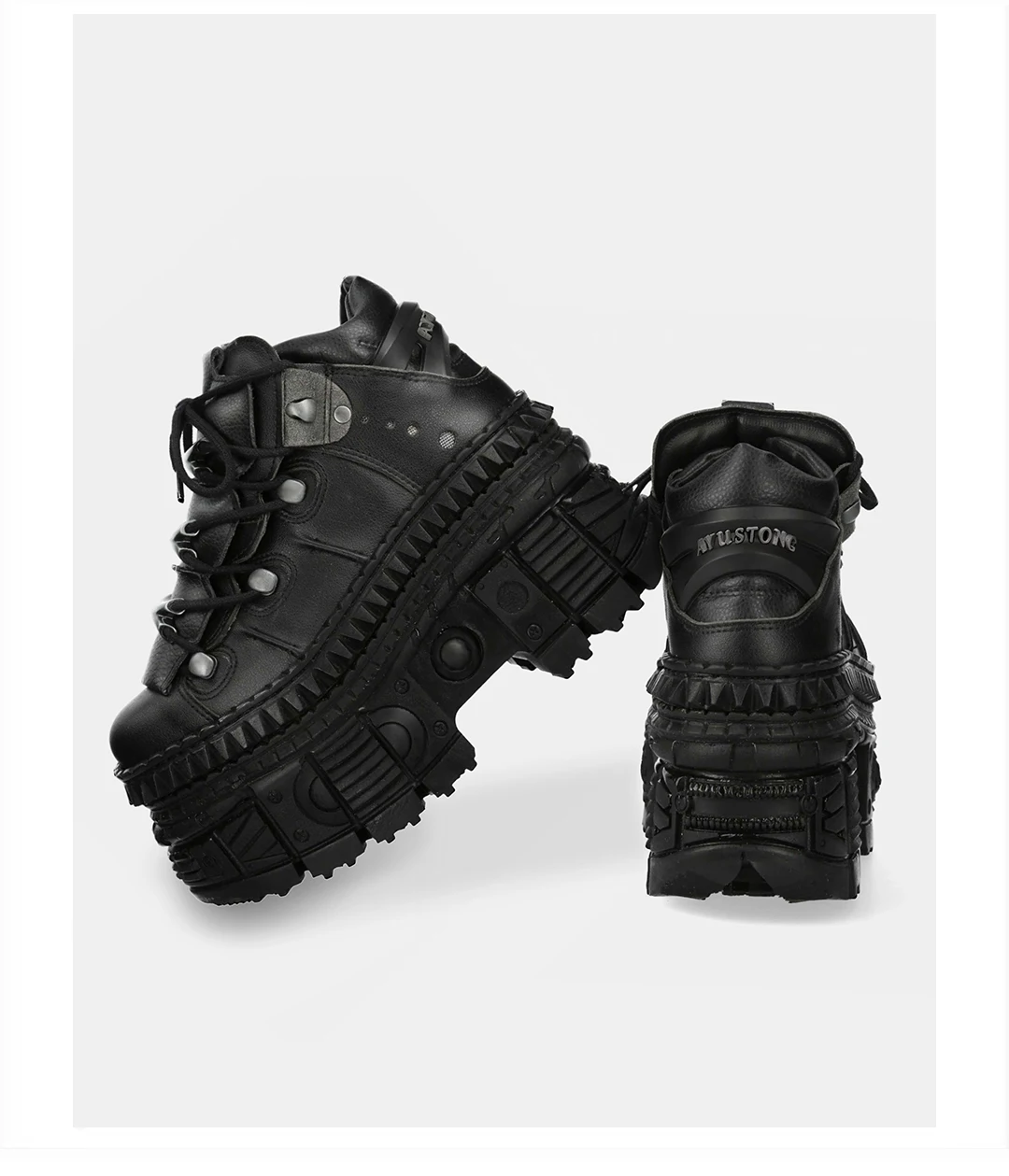 ⚡ Unisex Retro Punk High-Top Shoes – Super Thick Muffin Tank Bottom with Metal Detailing