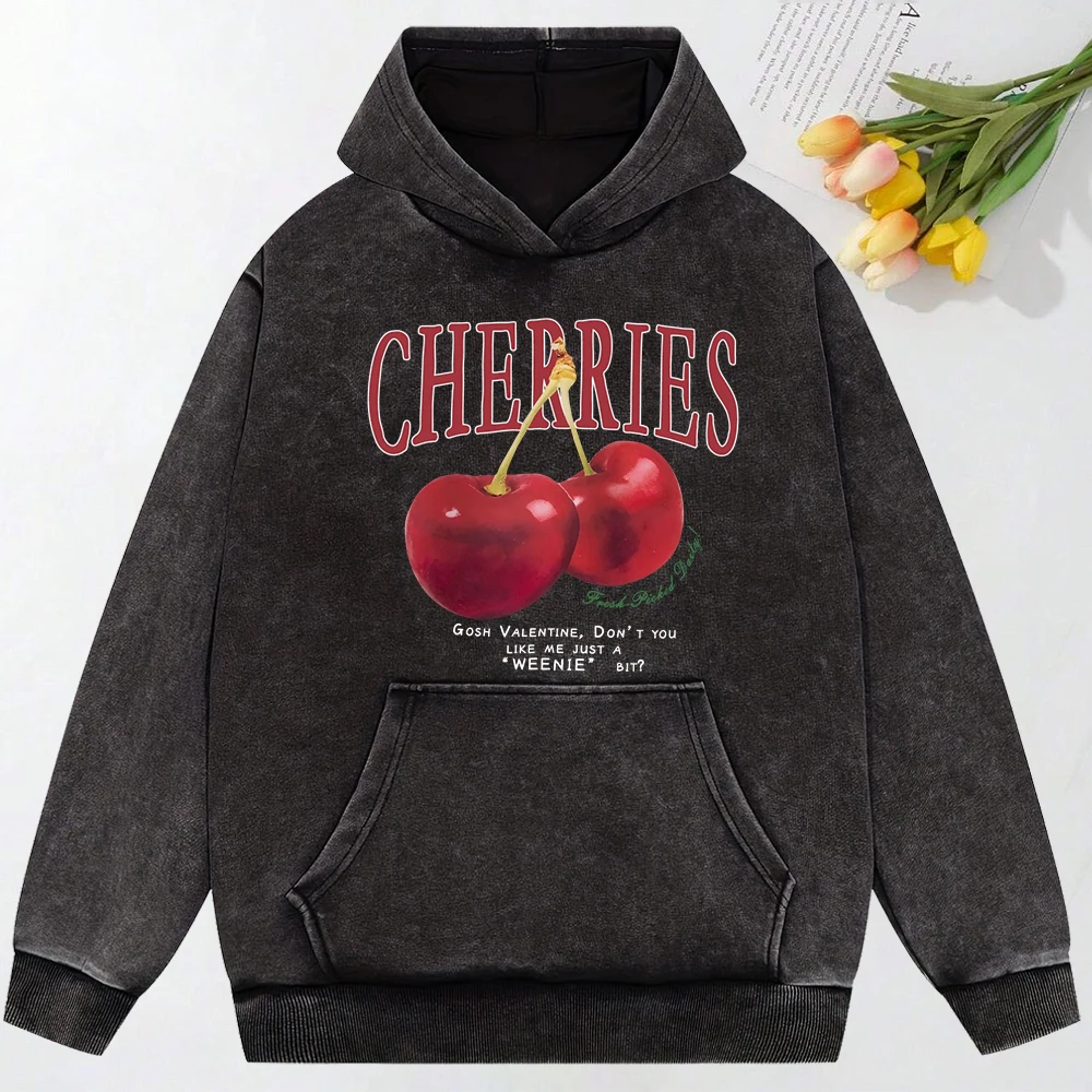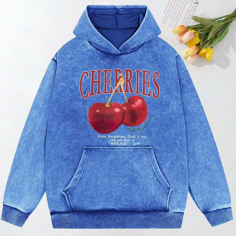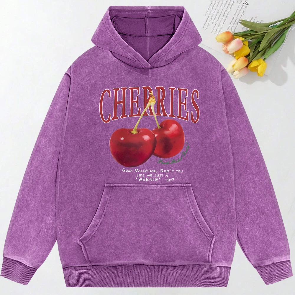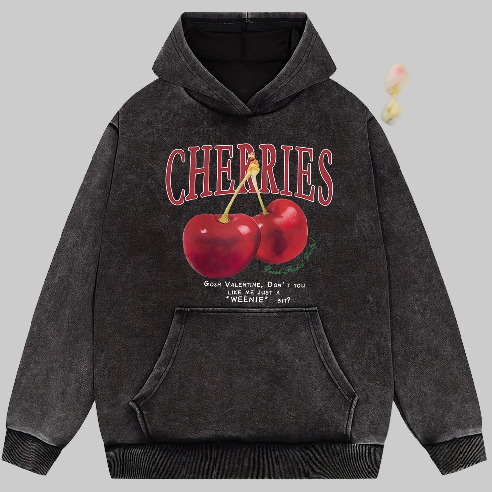 Add a touch of playful charm to your wardrobe with the Cherries Print Oversized Cotton Hoodie for Women. Made from soft, washed cotton, this hoodie combines everyday comfort with casual streetwear style. The relaxed oversized fit makes it perfect for layering, giving you a laid-back yet fashionable vibe.