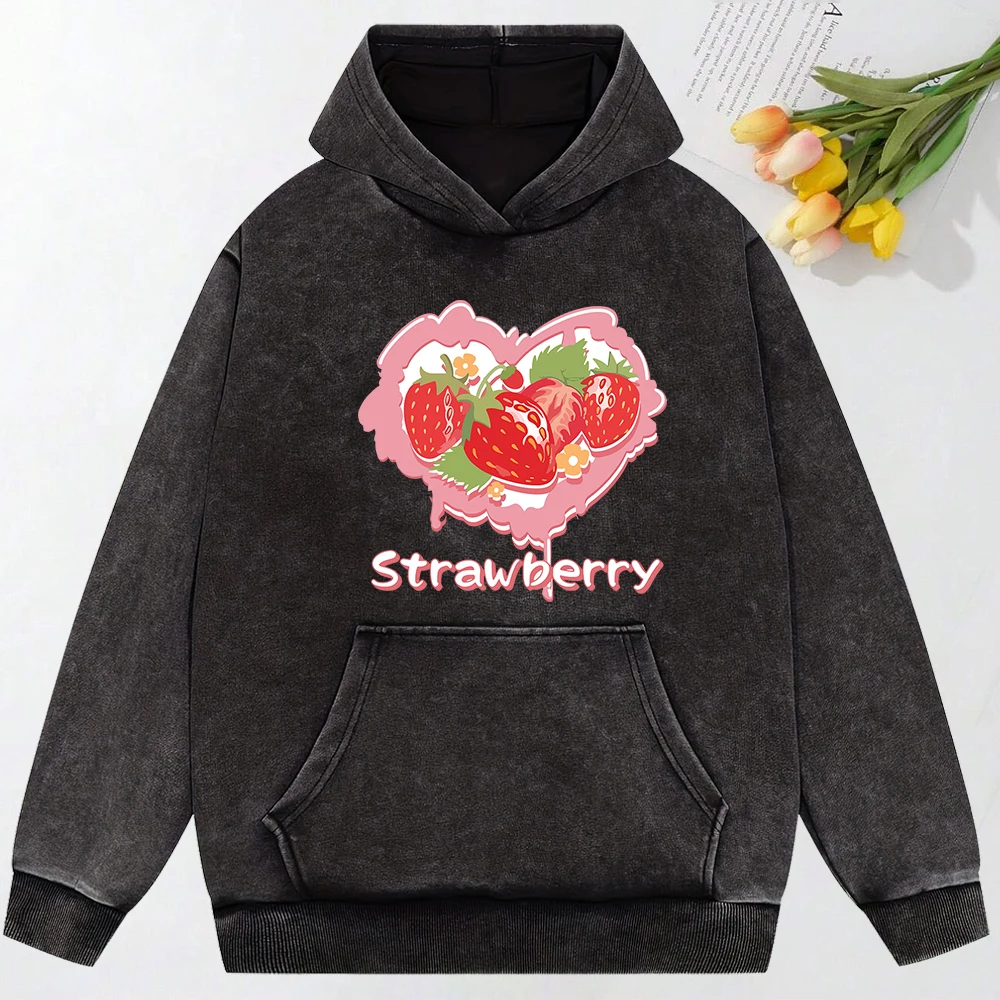 ✨ Stay cozy, stylish, and effortlessly retro with the Heart Strawberry Washed Hoodie—your new go-to for casual streetwear chic.