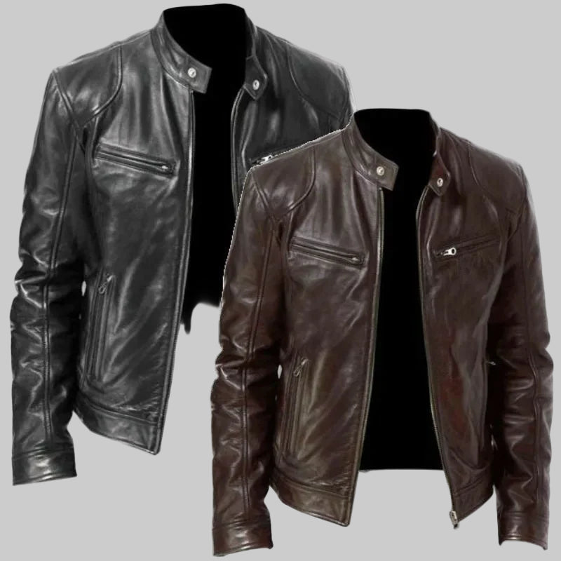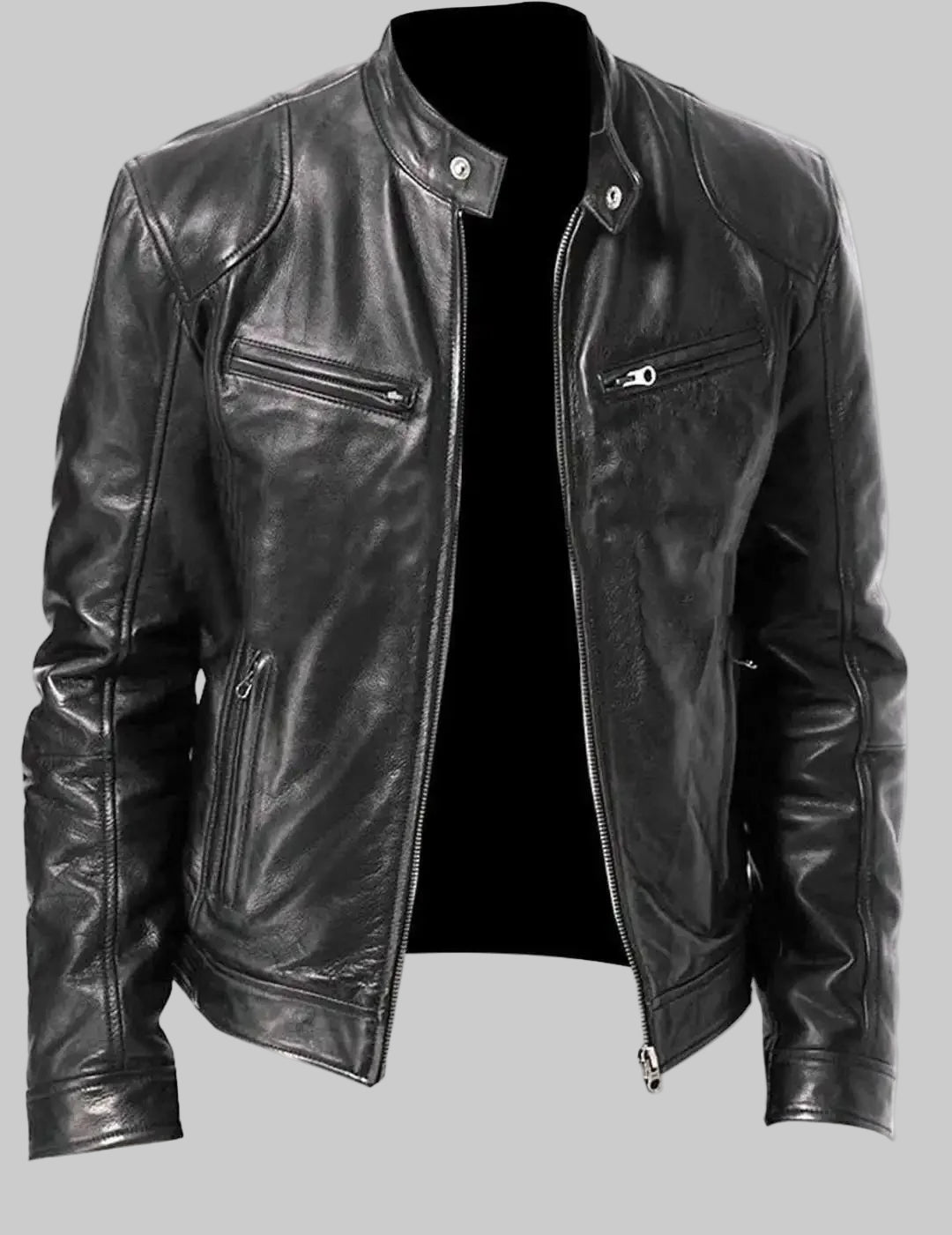 Slim Fit PU Leather Stand Collar Motorcycle Jacket