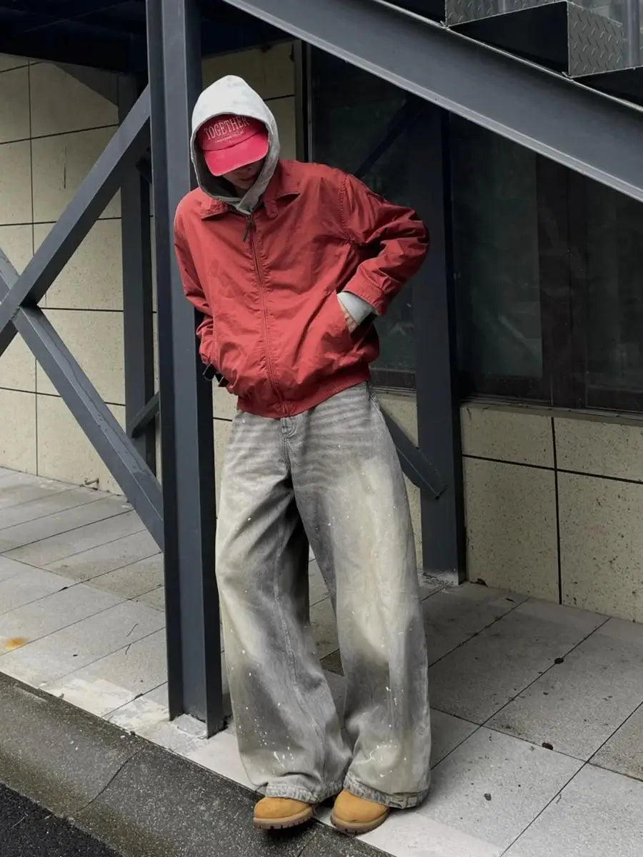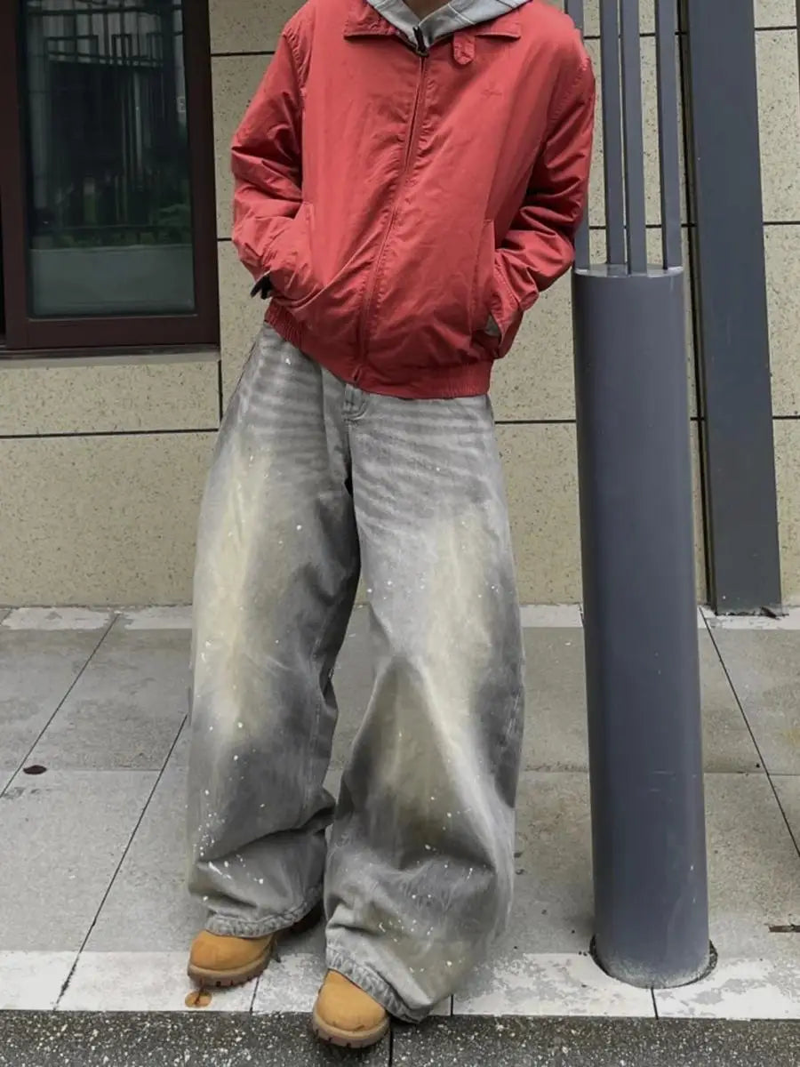 Turn your fit into straight-up artwork with these American High Street Retro Splattered Ink Jeans. Rockin’ a loose wide-leg cut with that perfect drapey flow, these pants are built for dudes who don’t just follow trends — they set the vibe.