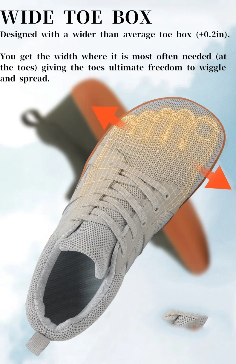 Experience natural comfort with these Wide Minimalist Barefoot Sneakers, designed to support your feet’s natural movement and posture.