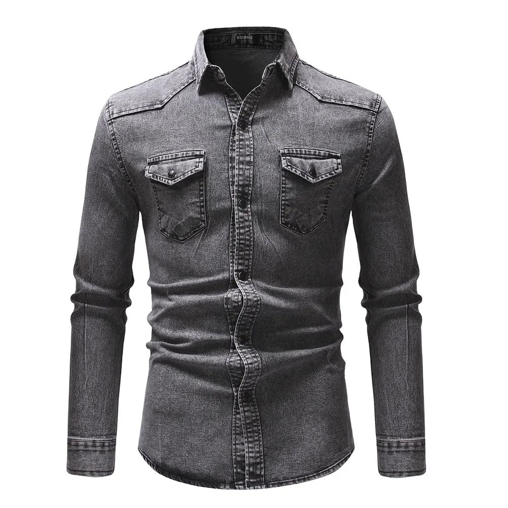 👕 Men’s Slim Fit Solid & Vintage Denim Shirts – Long Sleeve Casual Button-Up Western Style 🔥✨