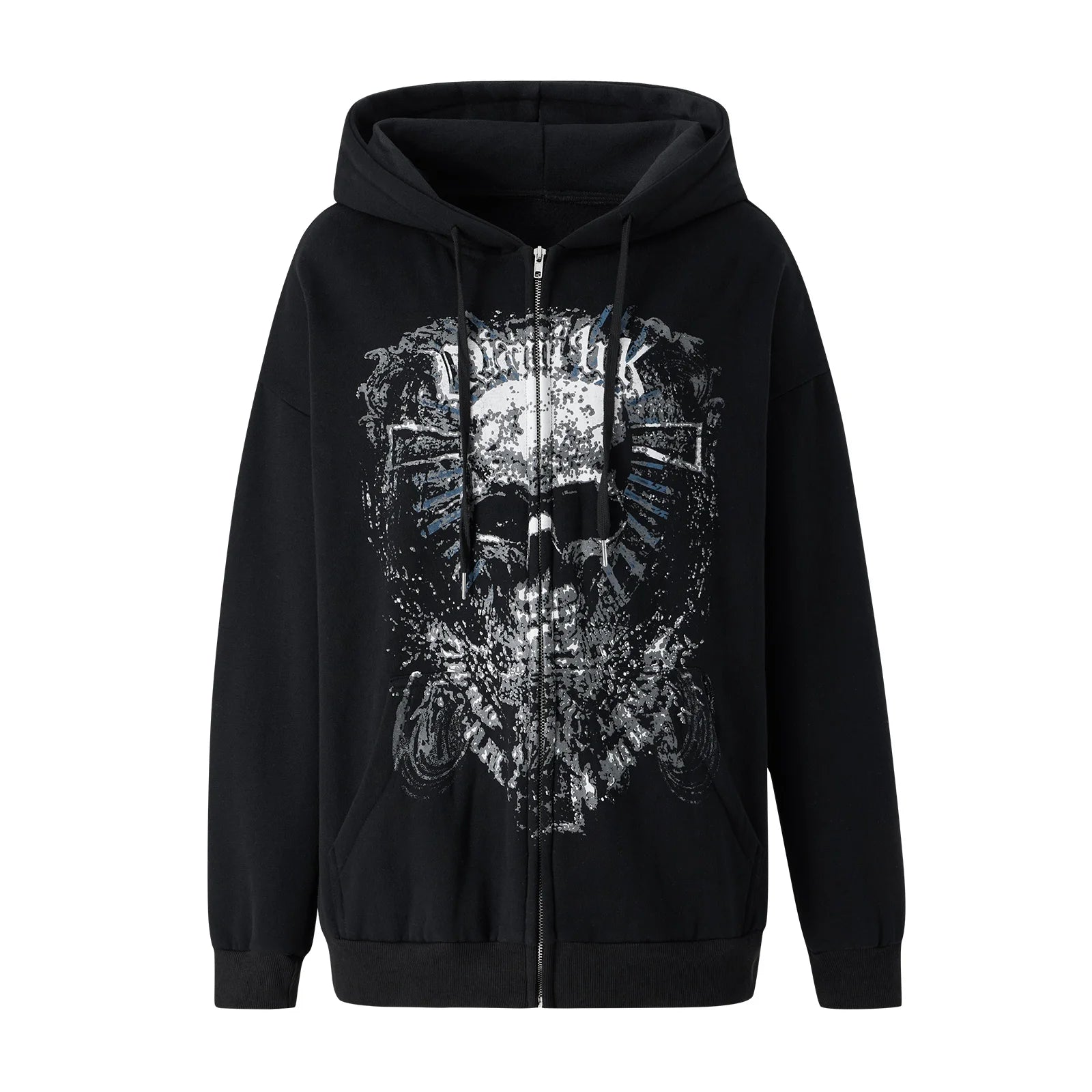 πŸ–€ 2000s Fairy Grunge Skull Hoodie – Y2K Oversize Gothic Streetwear πŸ’€βœ¨
