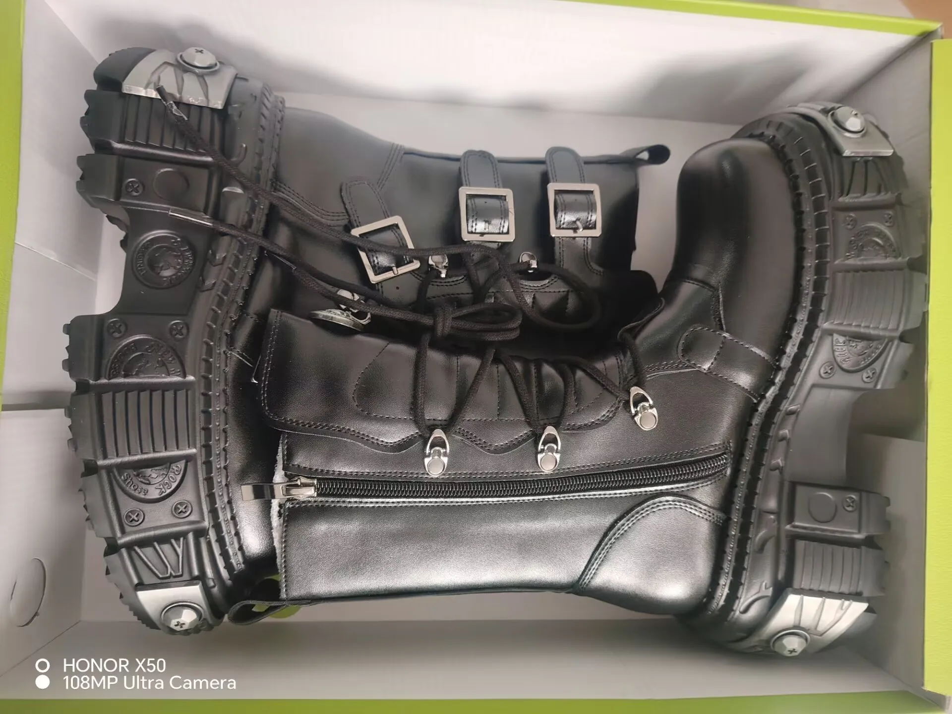 These boots aren’t just footwear — they’re a cultural statement. With their retro Spanish motorcycle inspiration and punk-heavy metal energy, they’re made for concerts, urban fashion shoots, or edgy daily wear. The platform sole and unisex design ensure comfort, inclusivity, and confidence in every step.