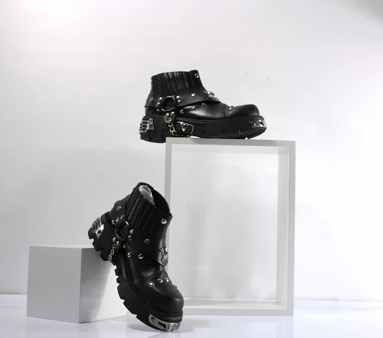 Pair with leather pants, jeans, skirts, or gothic-inspired outfits. These boots are ideal for fashion-forward individuals, motorcyclists, and punk enthusiasts. 👖🧥