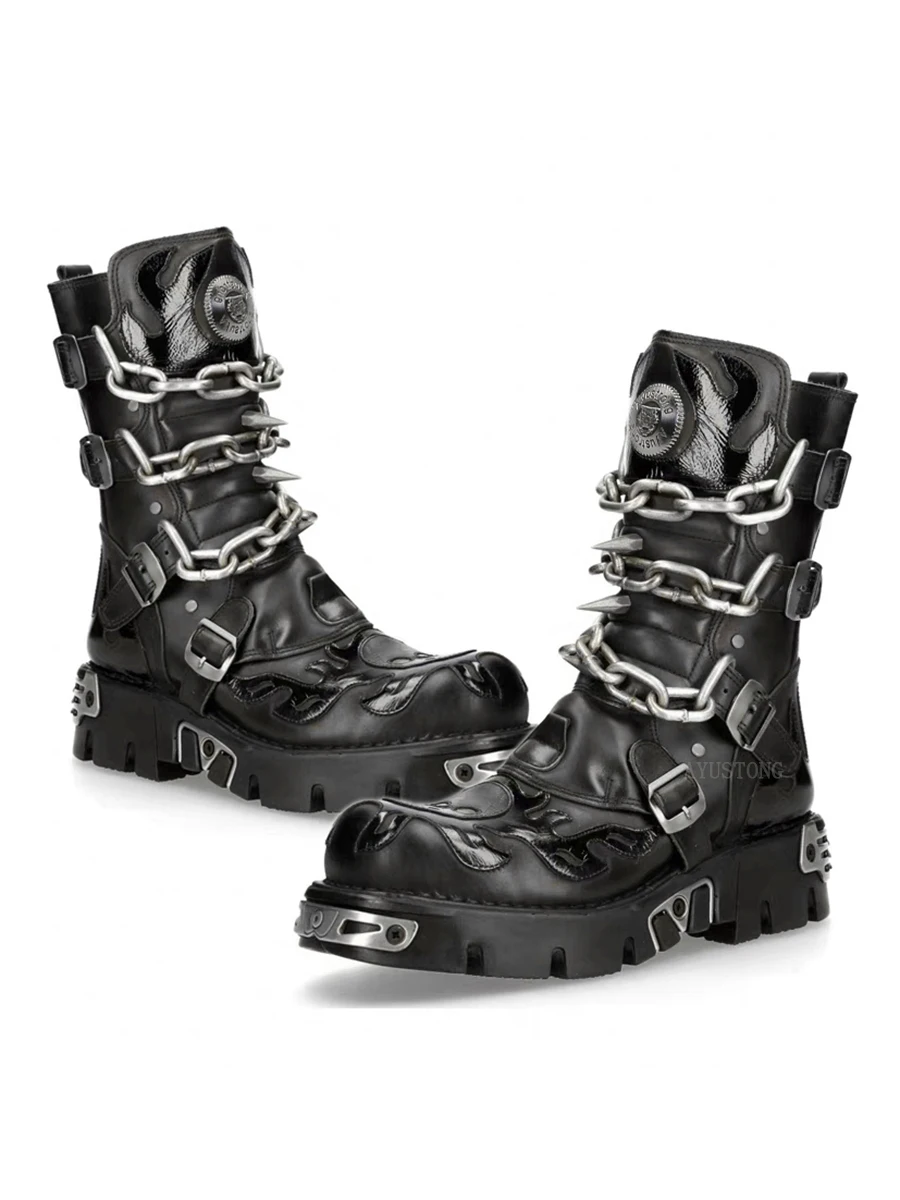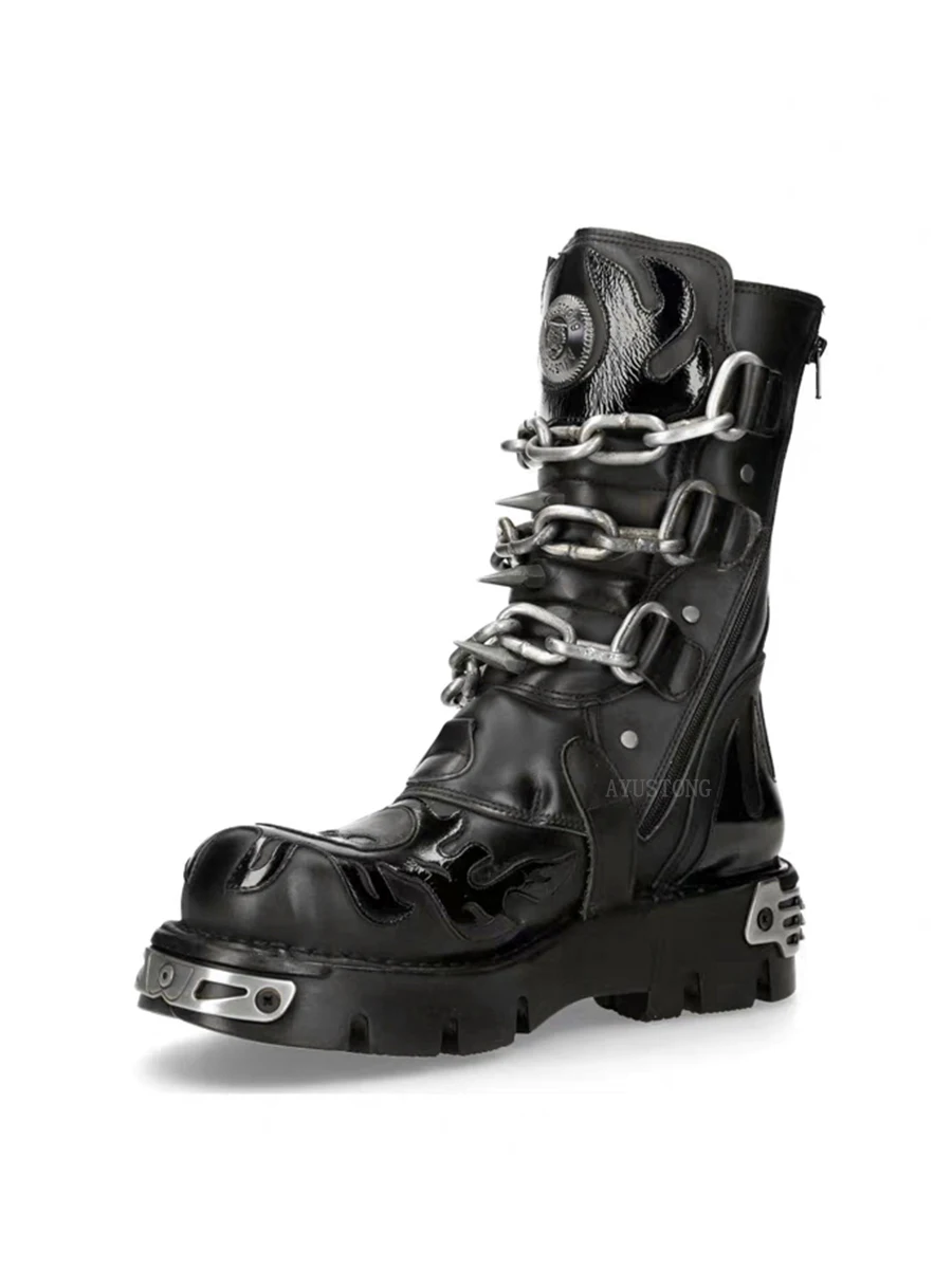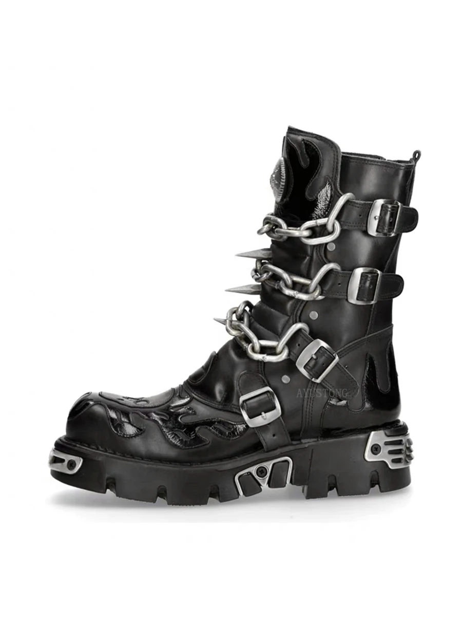 ⚡ Men’s Punk Motorcycle & Goth Skull Mid-Calf Boots ⚡
