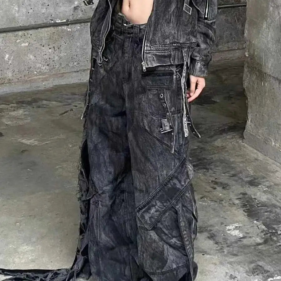 ⚑ American High Street Punk Chic Jeans – Vintage Washed Wide-Leg Style πŸ‘–
