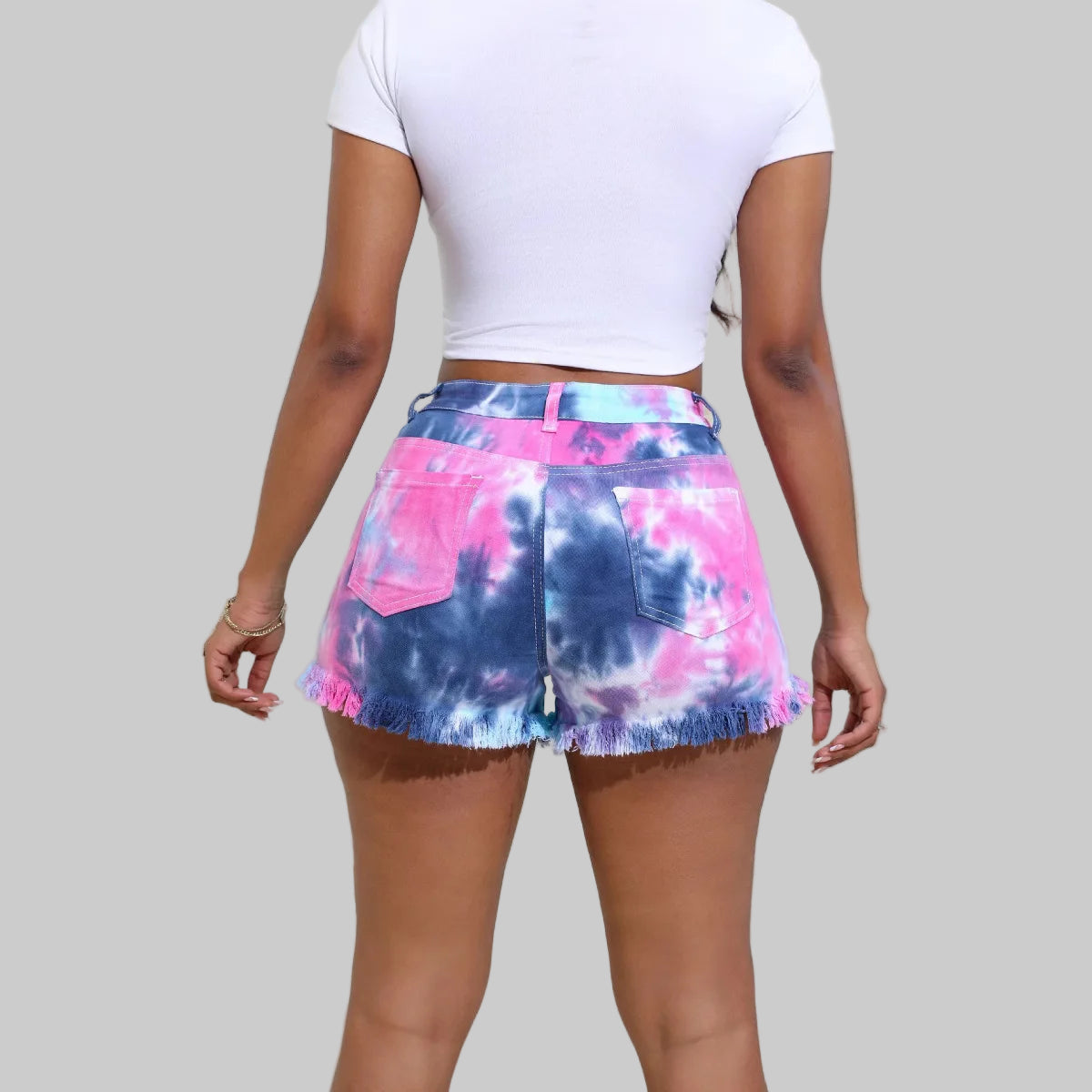 Women’s Tie-Dye Distressed Denim Shorts – 2025 Summer Streetwear
