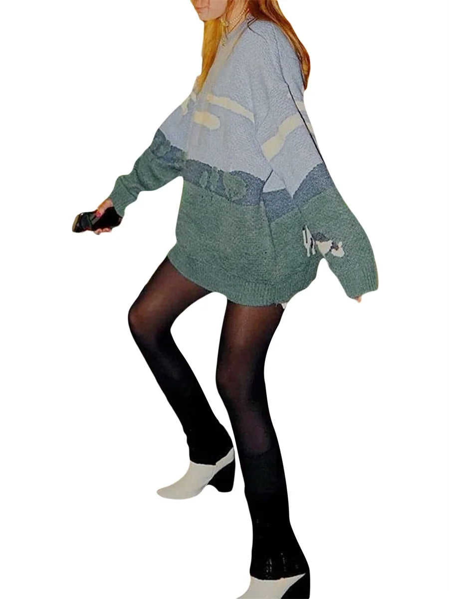 Cozy Cow Print Knitted Winter Sweater
