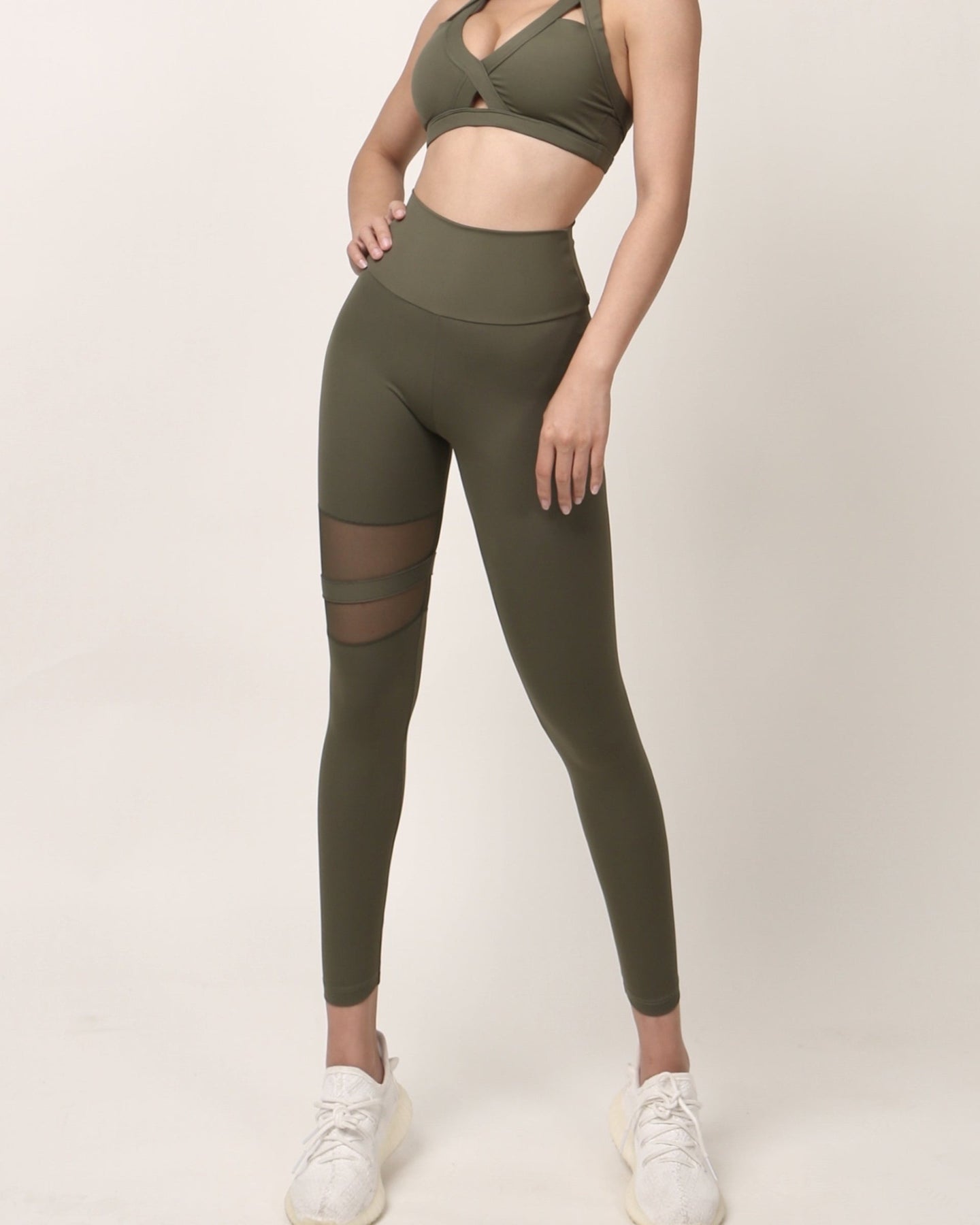 Elevate Your Workout Wardrobe with our stylish leggings featuring a unique cut-out design and trendy mesh inserts. Perfect for both workouts and everyday wear, these leggings combine fashion with functionality.