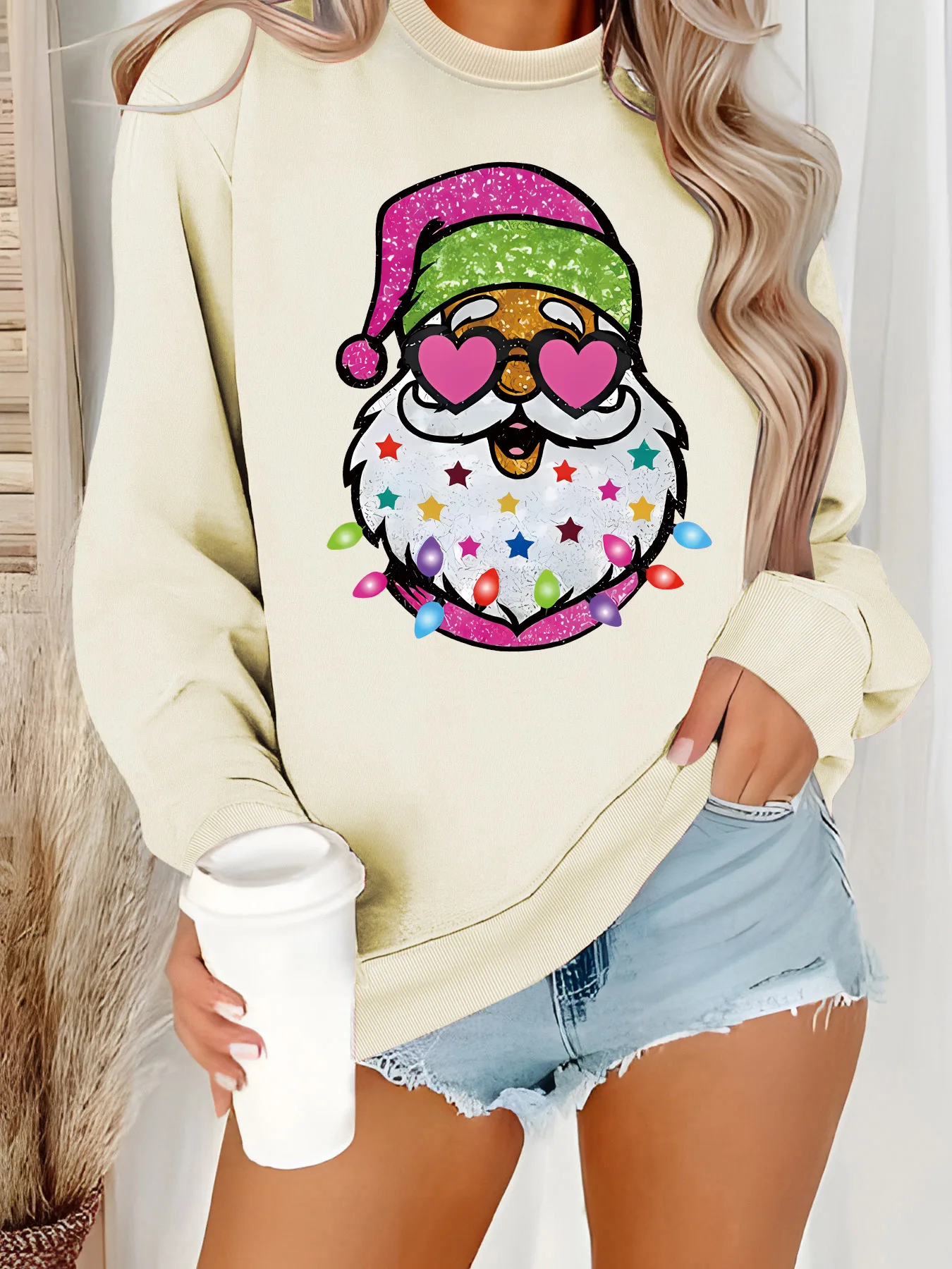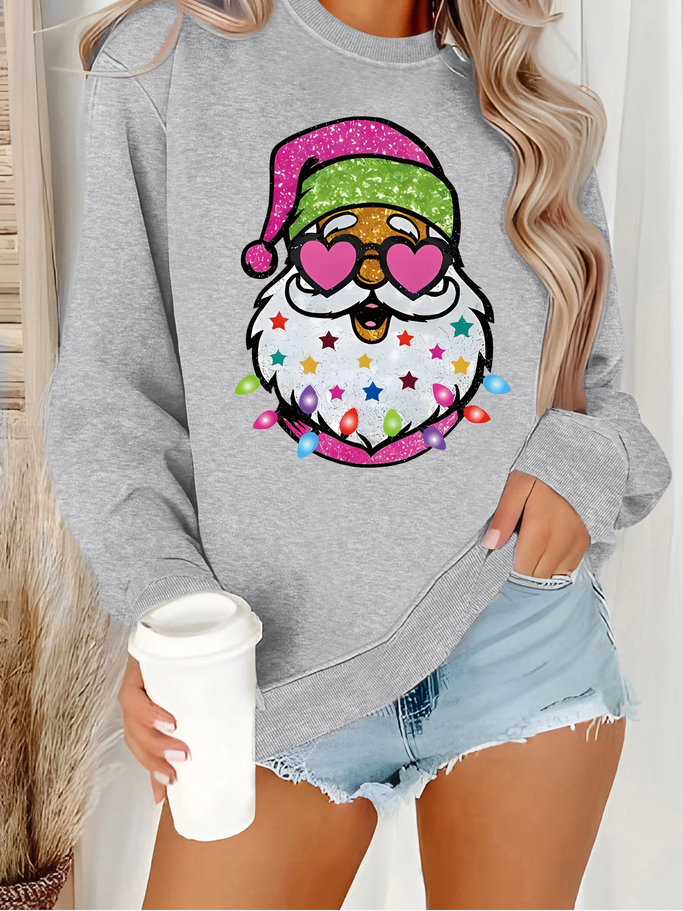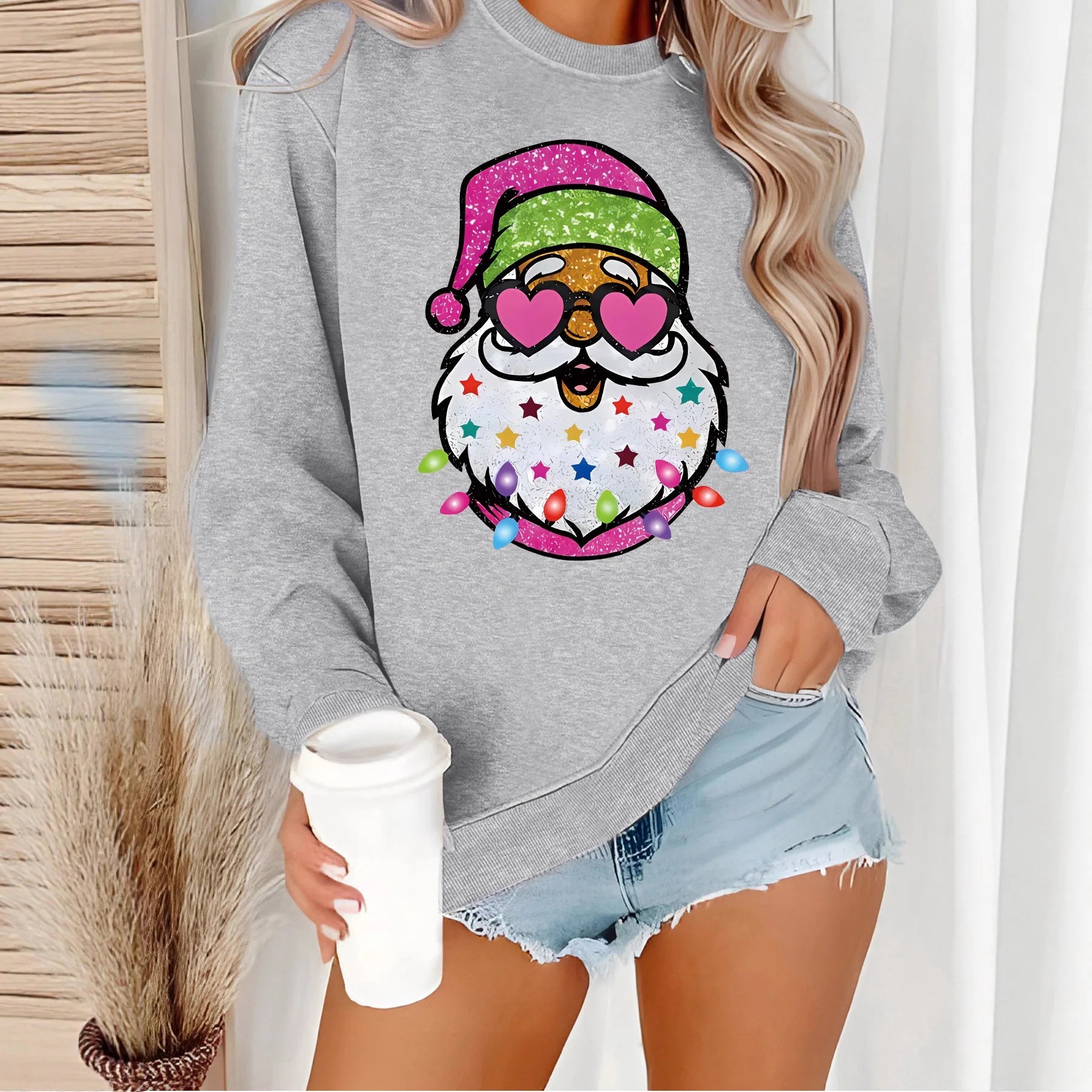 Featuring a festive Santa Claus print, this sweatshirt instantly adds a touch of holiday cheer to your wardrobe, making it perfect for the Christmas season.