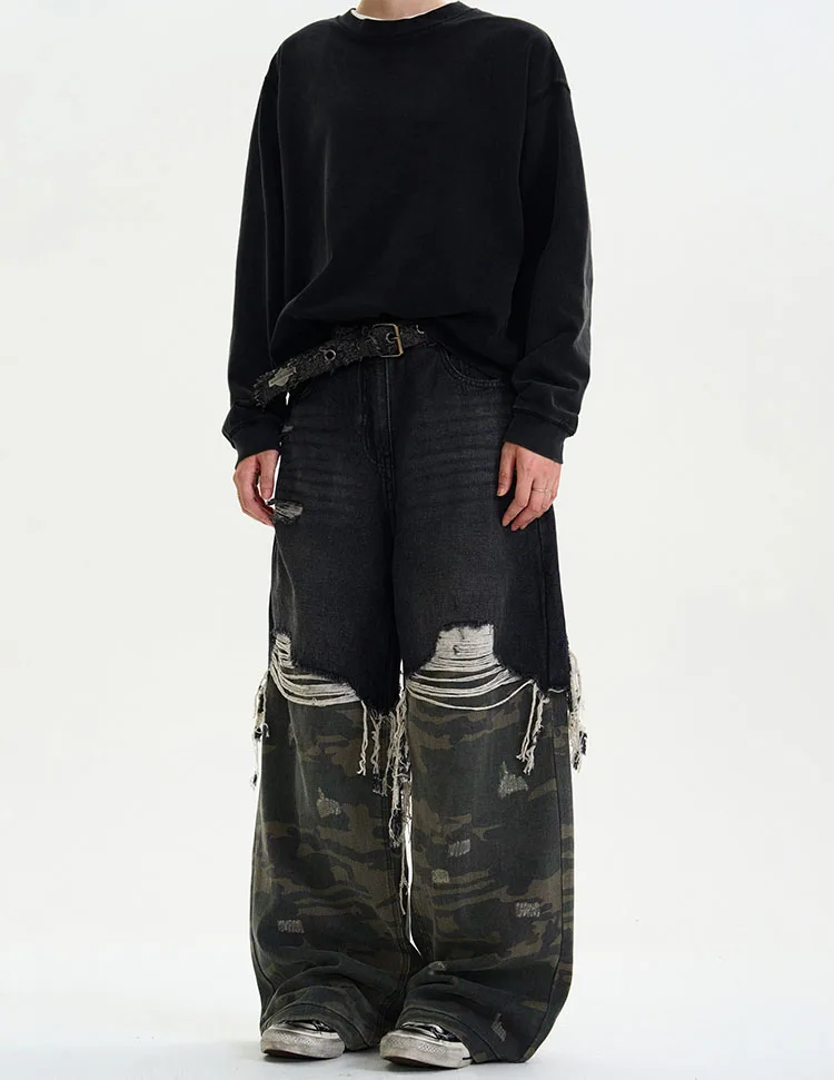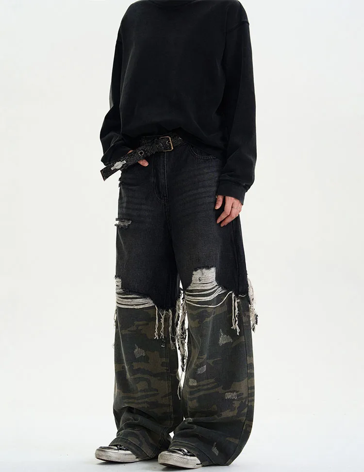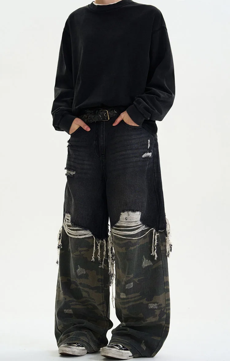 Step into futuristic retro streetwear with these 2025 Autumn/Winter Camouflage Spliced Denim Pants, where Y2K energy meets cyberpunk attitude. Designed with a loose baggy silhouette and a mid-waist fit, these jeans combine camouflage splicing with classic light-wash denim for a bold, rebellious edge straight from the Japanese Harajuku scene.