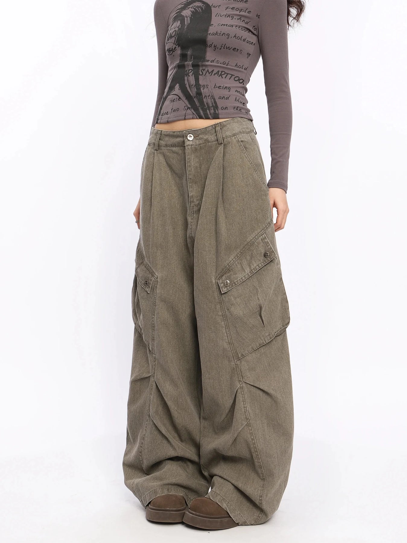 Bring an edge to your wardrobe with these Women’s Retro Deconstructed Folded Pocket Jeans, crafted for a bold blend of hip-hop streetwear and classic workwear style. The high-waist design flatters your figure, while the floor-length wide-leg cut offers a relaxed, trend-forward silhouette.