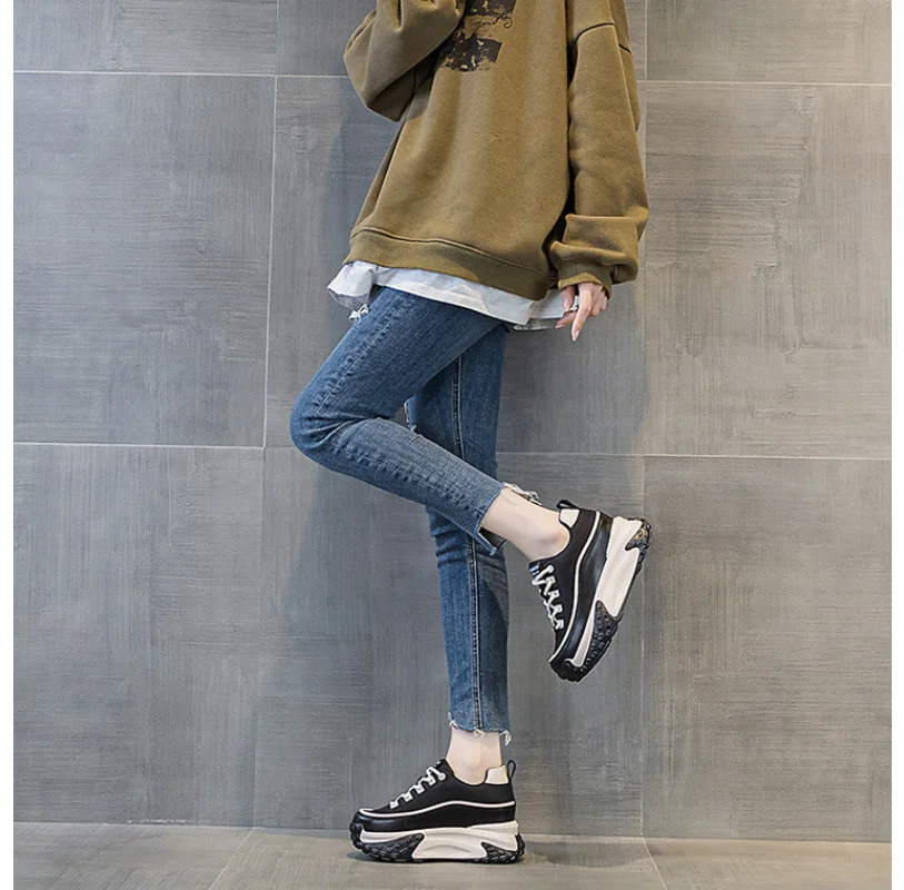 These 7cm Cow Genuine Leather Platform Wedge Sneakers combine fashion, warmth, and comfort, making them a must-have addition to your seasonal wardrobe. Step confidently with a hidden wedge, chunky style, and premium leather craftsmanship! 👟✨