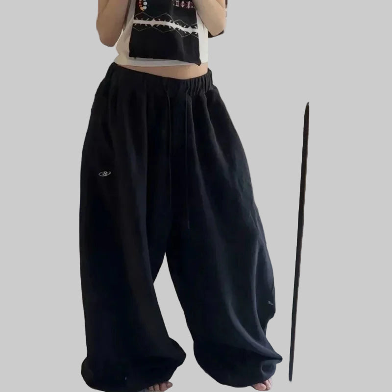 Channel street-style confidence with these American Retro Hip-Hop Oversized Sweatpants for Women, designed for a bold yet comfortable look. Featuring a high-waist fit and a wide-leg silhouette, these pants blend retro hip-hop energy with modern Korean streetwear influence.