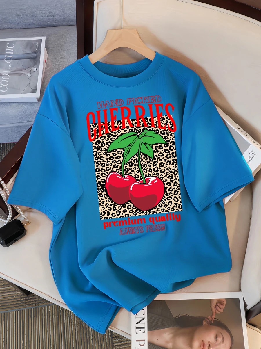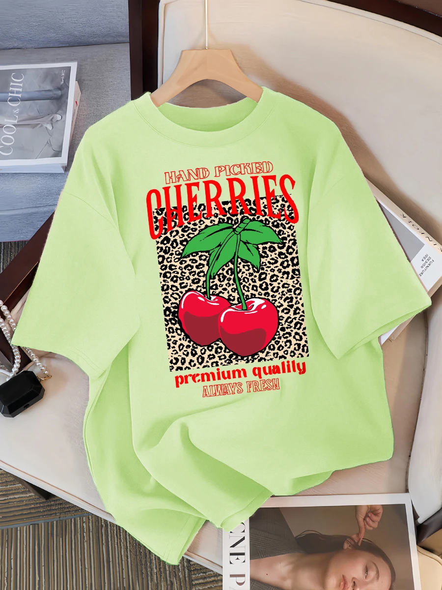 Bring a touch of playful charm to your wardrobe with this Freshly Handpicked Cherry Print T-Shirt. Crafted from 100% breathable cotton, itβs soft, lightweight, and perfect for warm summer days. Featuring a classic O-neck design and a loose, relaxed fit, this tee combines comfort with casual chic. The vibrant cherry print adds a fresh and youthful vibe, making it an easy-to-style staple for everyday wear.