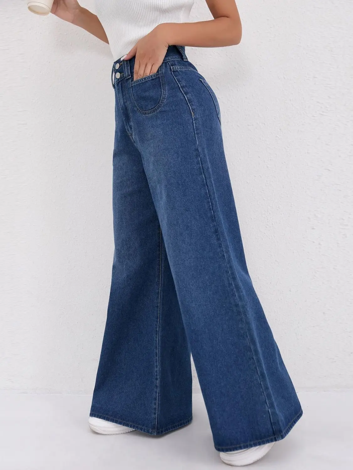 🔥 Effortless elegance meets modern comfort — these high-waist wide-leg jeans are perfect for women who love a flattering, stylish, and versatile denim staple! 👖🌸✨