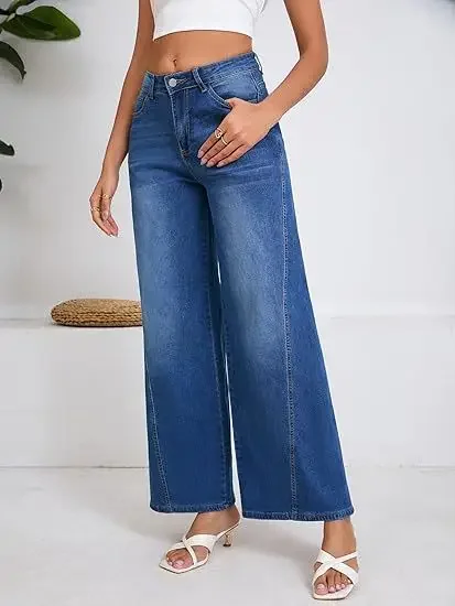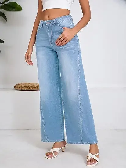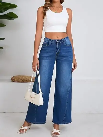 💨 Comfortable Fit The loose stitching and wide-leg design allow freedom of movement and all-day comfort, making these jeans ideal for daily wear.