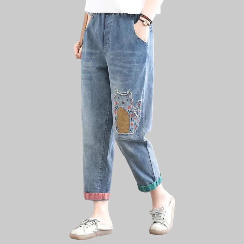 Delicate embroidered patch details add playful character and individuality, elevating these jeans beyond the basics. Crafted from quality denim, they provide comfort, durability, and effortless versatility for casual daily wear or stylish streetwear outfits.