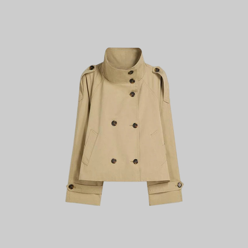Double-Breasted Closure – Classic trench-inspired style with a modern cropped cut.