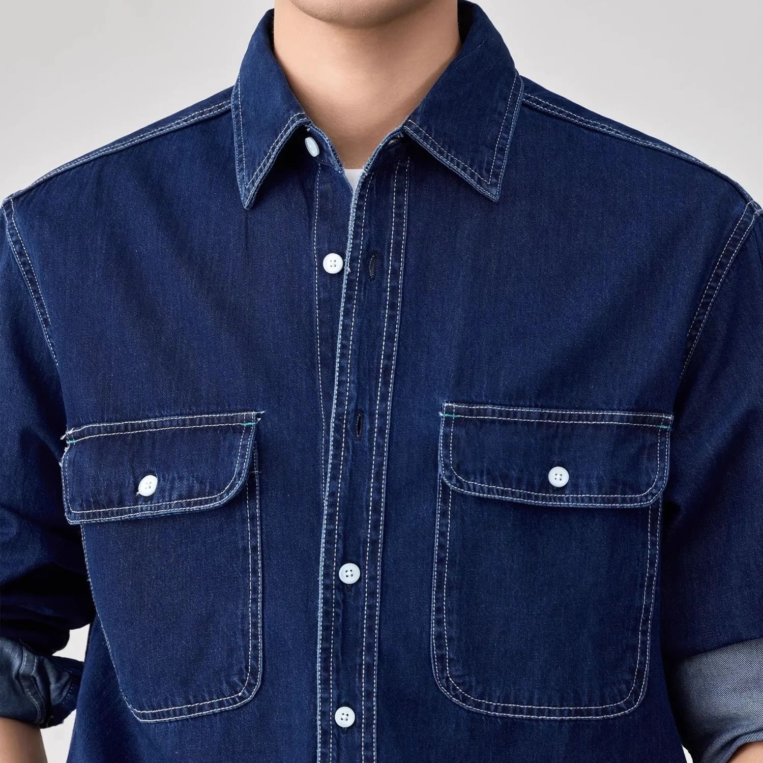 👔 American Casual Men’s Denim Shirt – Trendy & Versatile