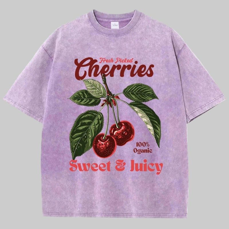 🍒 Freshly Picked Cherries Oversized Cotton-Washed T-Shirt – Street Style Top