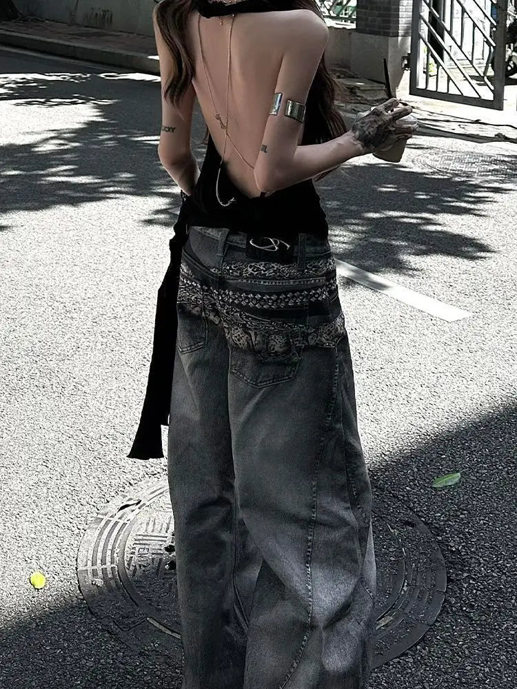 Step into retro street fashion with these Belt Printing Design Wide-Leg Jeans, crafted to stand out with their unique printed belt detail. Blending autumn retro vibes with modern high-street style, these jeans bring comfort, attitude, and effortless cool into one statement piece.